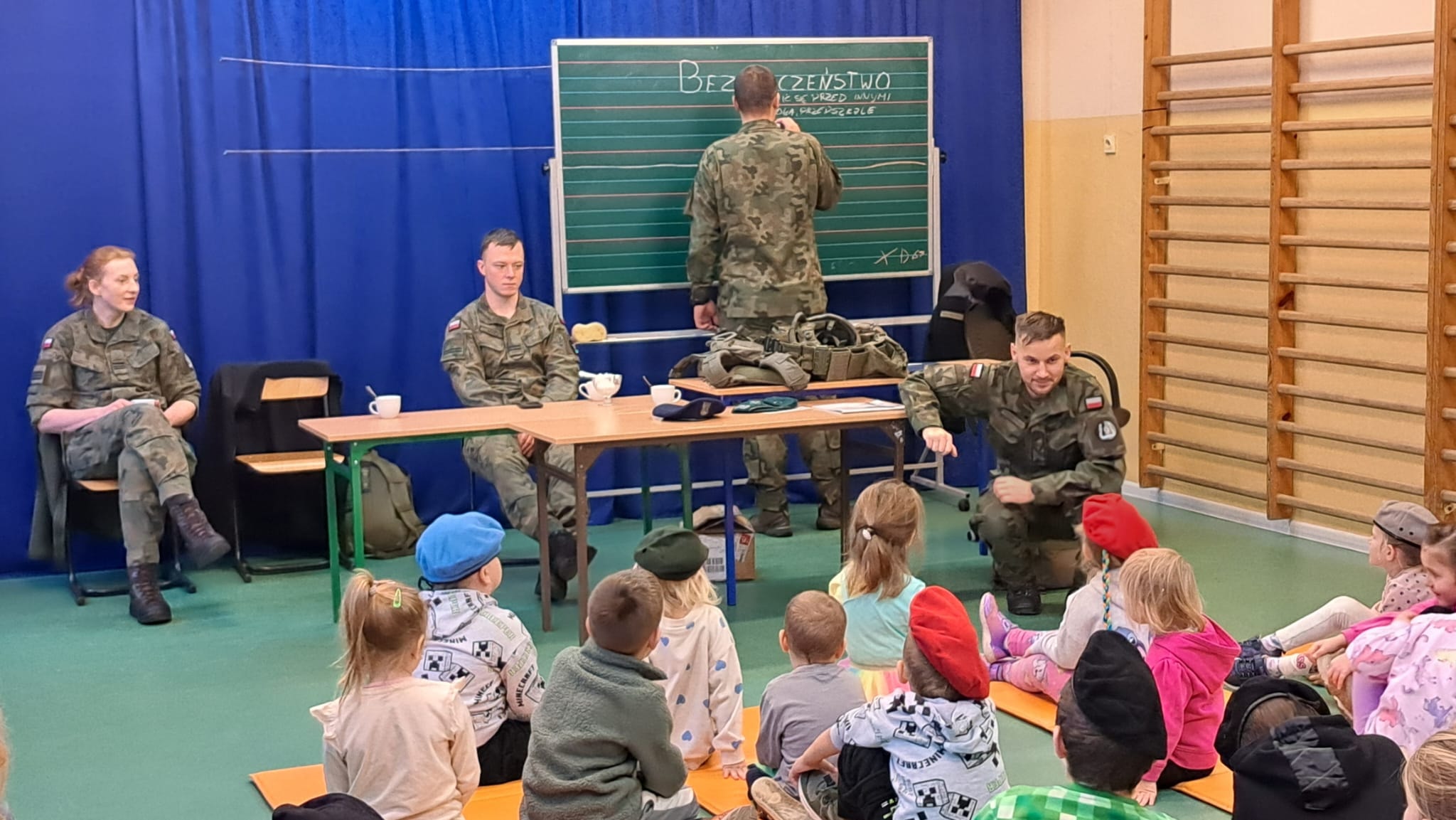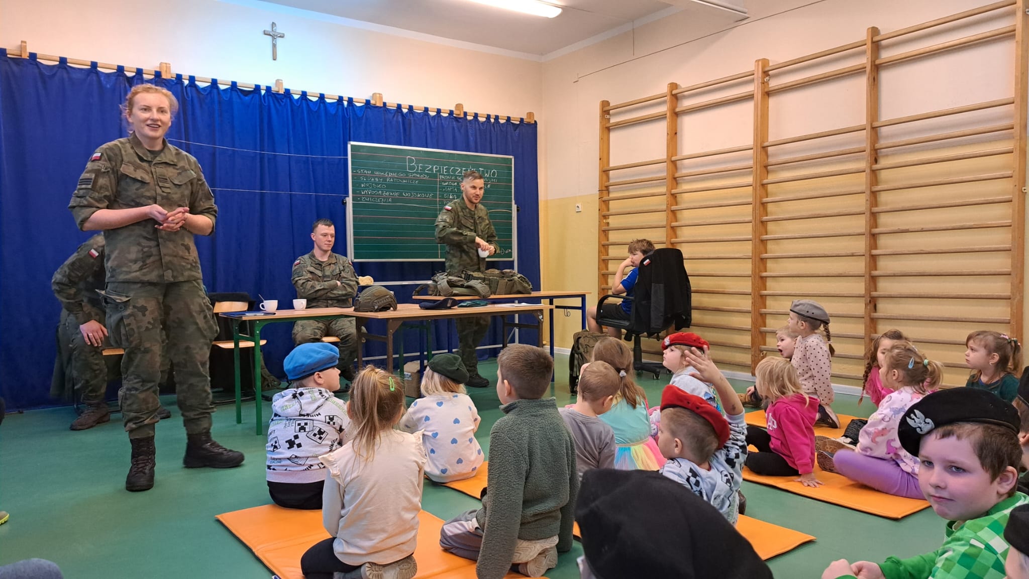 W minionym tygodniu nasi uczniowie uczestniczyli w zajęciach w ramach projektu „Edukacja z wojskiem”. Żołnierze z 9 Olsztyńskiego Batalionu Dowodzenia poprowadzili ciekawe i praktyczne lekcje dotyczące bezpieczeństwa, pierwszej pomocy, ewakuacji oraz reagowania w sytuacjach kryzysowych. Pozując do zdjęć w wojskowych beretach wszyscy uczestnicy spotkania mogli przez chwilę poczuć się jak prawdziwi żołnierze. Zdyscyplinowani, uważni, dumni.