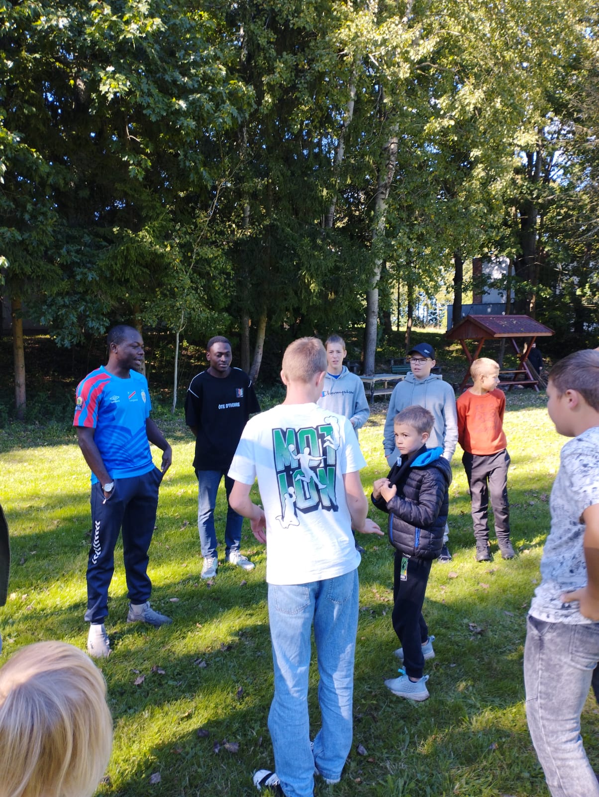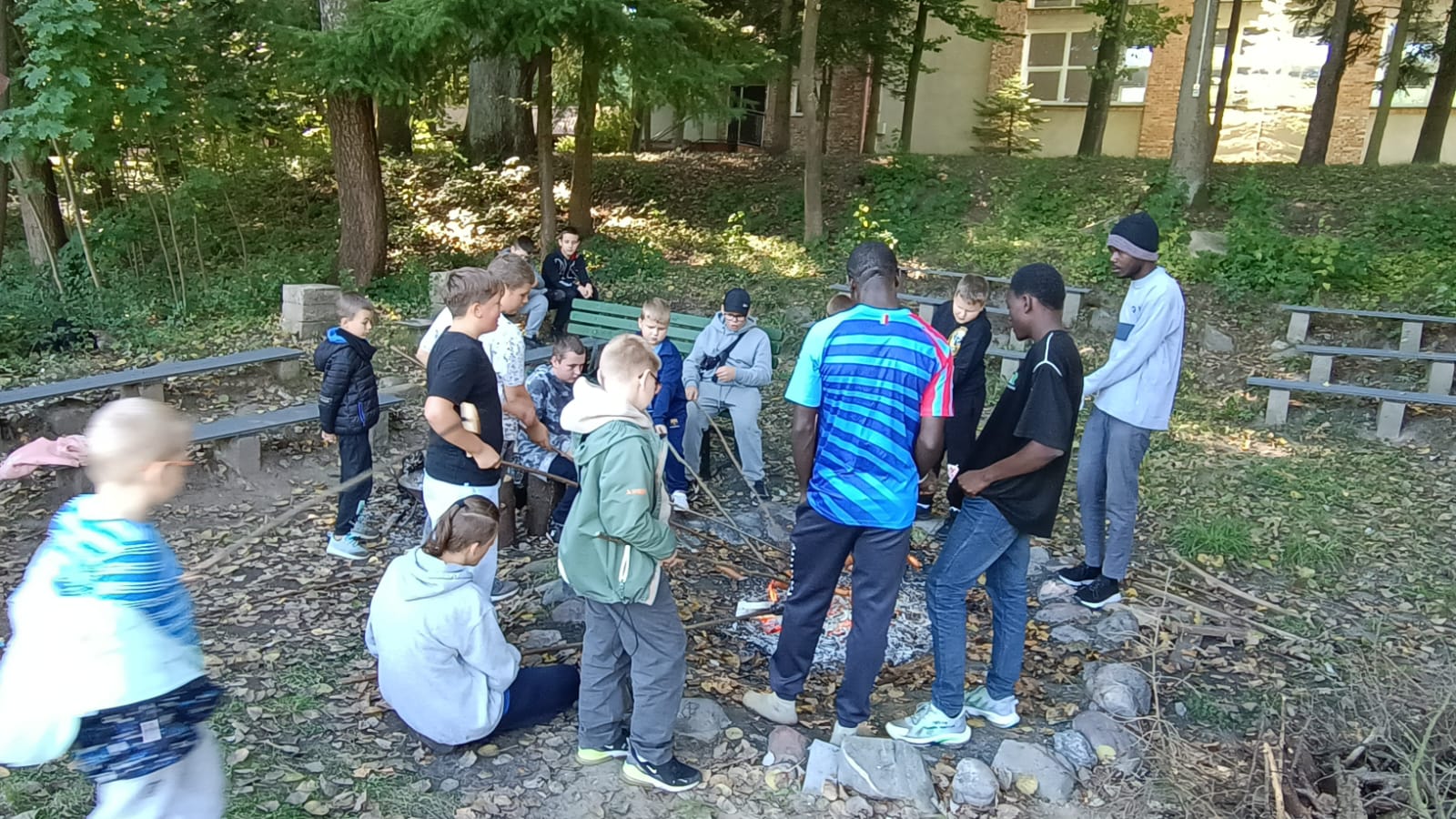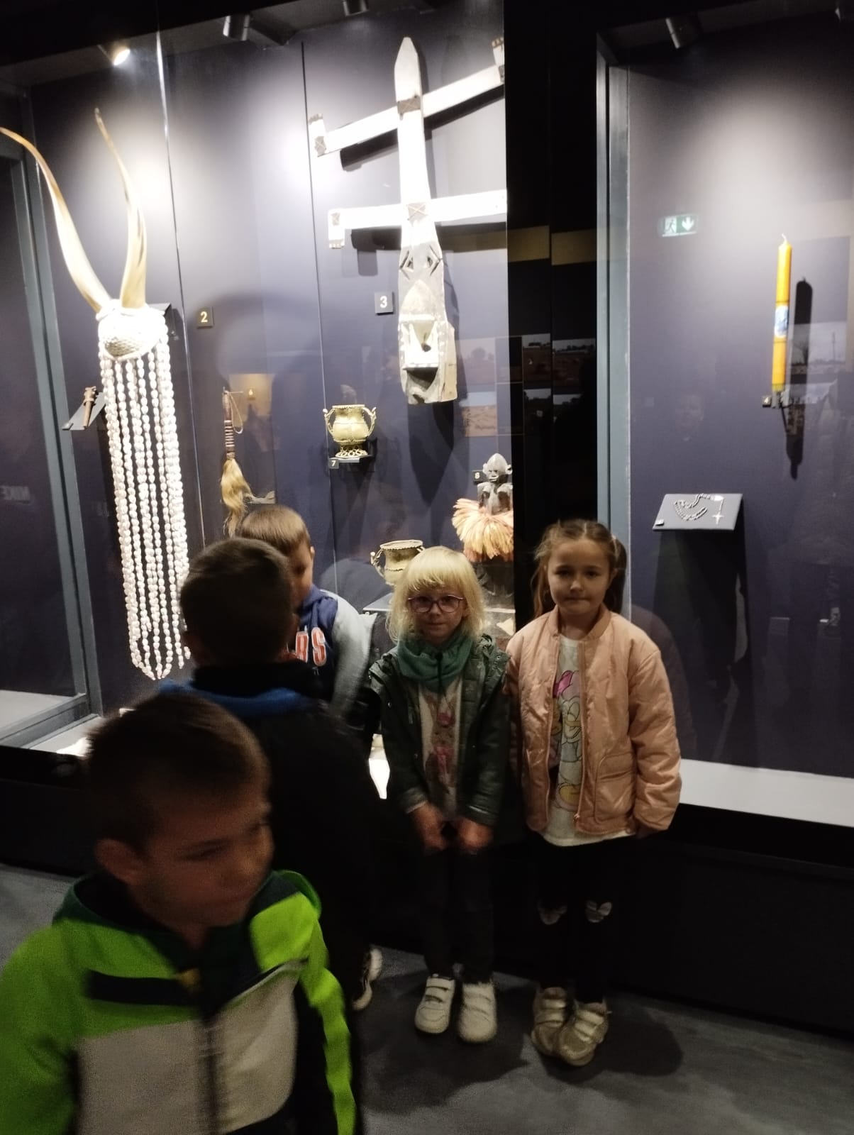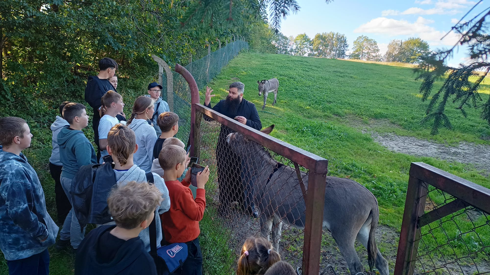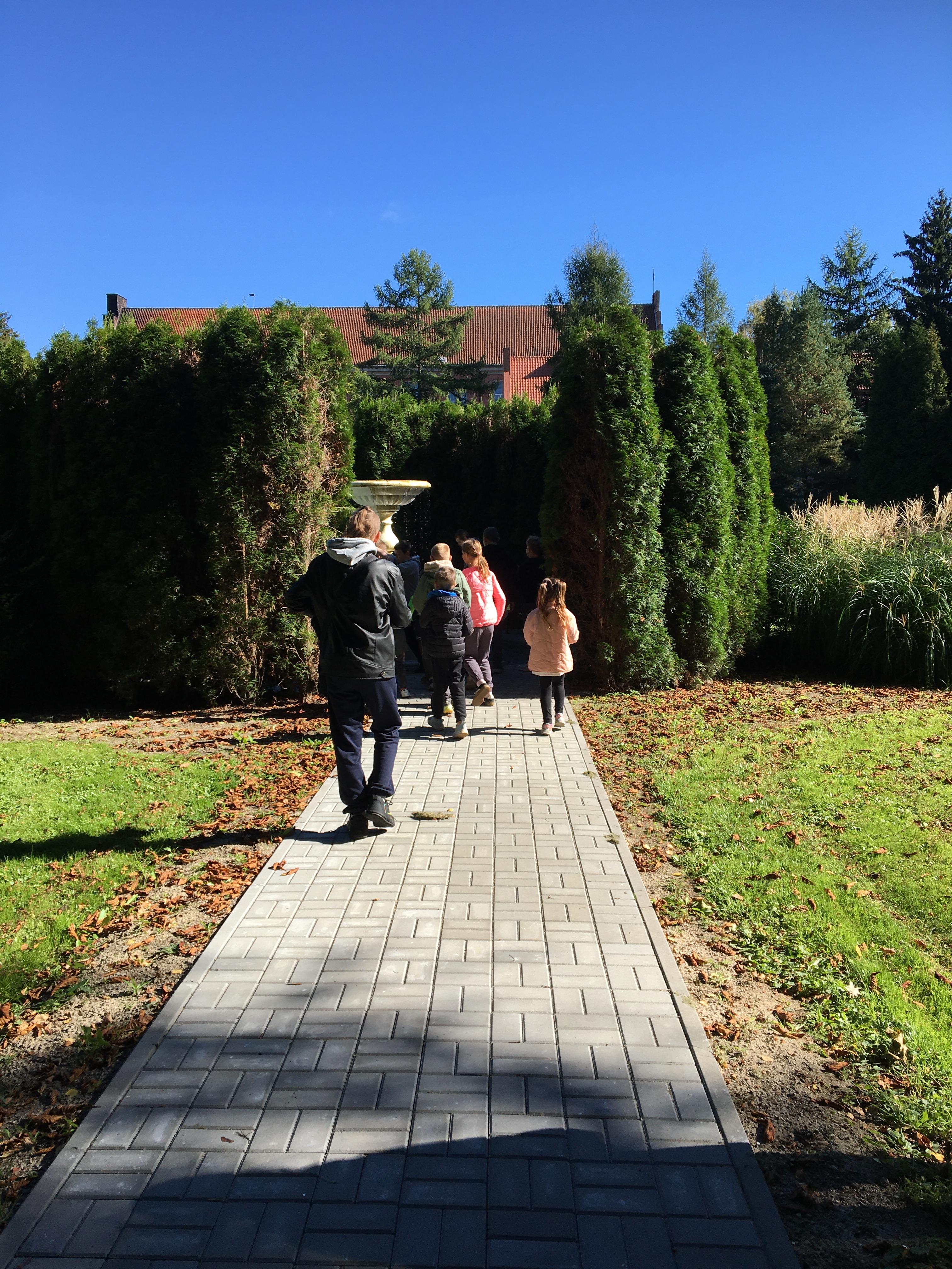 Do oddalonego o 46 kilometrów Pieniężna wyruszyliśmy w czwartkowy poranek. Celem zorganizowanej w ramach projektu Poznaj swoją małą Ojczyznę wycieczki było znajdujące się w siedzibie Misyjnego Seminarium Duchownego Księzy Werbistów Muzeum Misyjno - Etnograficzne. Założone w 1964 roku, poddane gruntownemu remontowi w latach 2018 -2025, Muzeum stanowi liczący 9000 eksponatów zbiór prezentujący dorobek kulturowy ludów wśród których pracowali i nadal pracują werbiści. Zamknięta w muzealnych gablotach feeria barw towarzyszyła nam podczas zwiedzania, a zaraz po niej przyszedł czas na zieleń seminaryjnego ogrodu, przez którą poprowadził nas kleryk Adam Ławniczak. Pamiętając powiedzenie o wszystkich drogach, które prowadzą do Rzymu, my doświadczyliśmy sytuacji, w której wszystkie drogi prowadzą zagorzałych miłośników piłki nożnej na boisko.Szczęśliwy traf oraz dobra energia towarzyszące nam tego dnia pozwoliły dołączyć do kleryków Jeana - Marie z Sudanu oraz jego dwóch kolegów z Togo i rozegrać mecz, który zakończył się arcysprawiedliwym wynikiem 3-3. Podczas meczu nie zabrakło serdecznych gestów, przybijania piątek i choć w użyciu były języki: francuski, angielski i polski, wyglądało na to, że wszyscy się rozumieją i pamiętają o przestrzeganiu zasad fair play. Język sportu jest językiem uniwersalnym.W tle płonęło ognisko, przypiekały się kiełbaski i toczyły rozmowy. Obrazu całości dopełniało słońce, które tego dnia przypomniało sobie i nam o złotej polskiej jesieni. Zaledwie sto metrów dalej, na oślej polance - w Królestwie Stefana i Tornada, życie toczyło się leniwie. Na krótką chwilę stało się ono i naszym udziałem. Werbistowskie osiołki jadły, szczerzyły zęby w beztroskim uśmiechu, a my patrzyliśmy, dotykaliśmy ich miękkiej sierści i ... również szczerzyliśmy zęby w beztroskim uśmiechu. Kolejne spotkanie całkowicie nas zaskoczyło. Zostaliśmy bowiem zaproszeni do wnętrza organów, a naszym mentorem stał się na ten czas ojciec Jan Glinka. Mogliśmy doświadczyć Jego pasji,zaangażowania i cierpliwości, a w przestrzeń popłynęły dźwięki wpisane w mapę pamięci i zapisane w sercu. Mnóstwo dobrej energii! Pragniemy serdecznie podziękować wszystkim naszym pieniężnieńskim przewodnikom: Pani Beacie za wędrówkę muzealnymi ścieżkami, ojcu Janowi za chęć podzielenia się z nami pięknem swojego świata, klerykowi Adamowi za ciekawą opowieść o pracy misyjnej w Afryce, młodzieńczy spontan i opiekę nad nami. Mamy nadzieję na kolejne dobre spotkania! Otrzymaliśmy od Was niezwykły dar - mnóstwo dobrej energii!