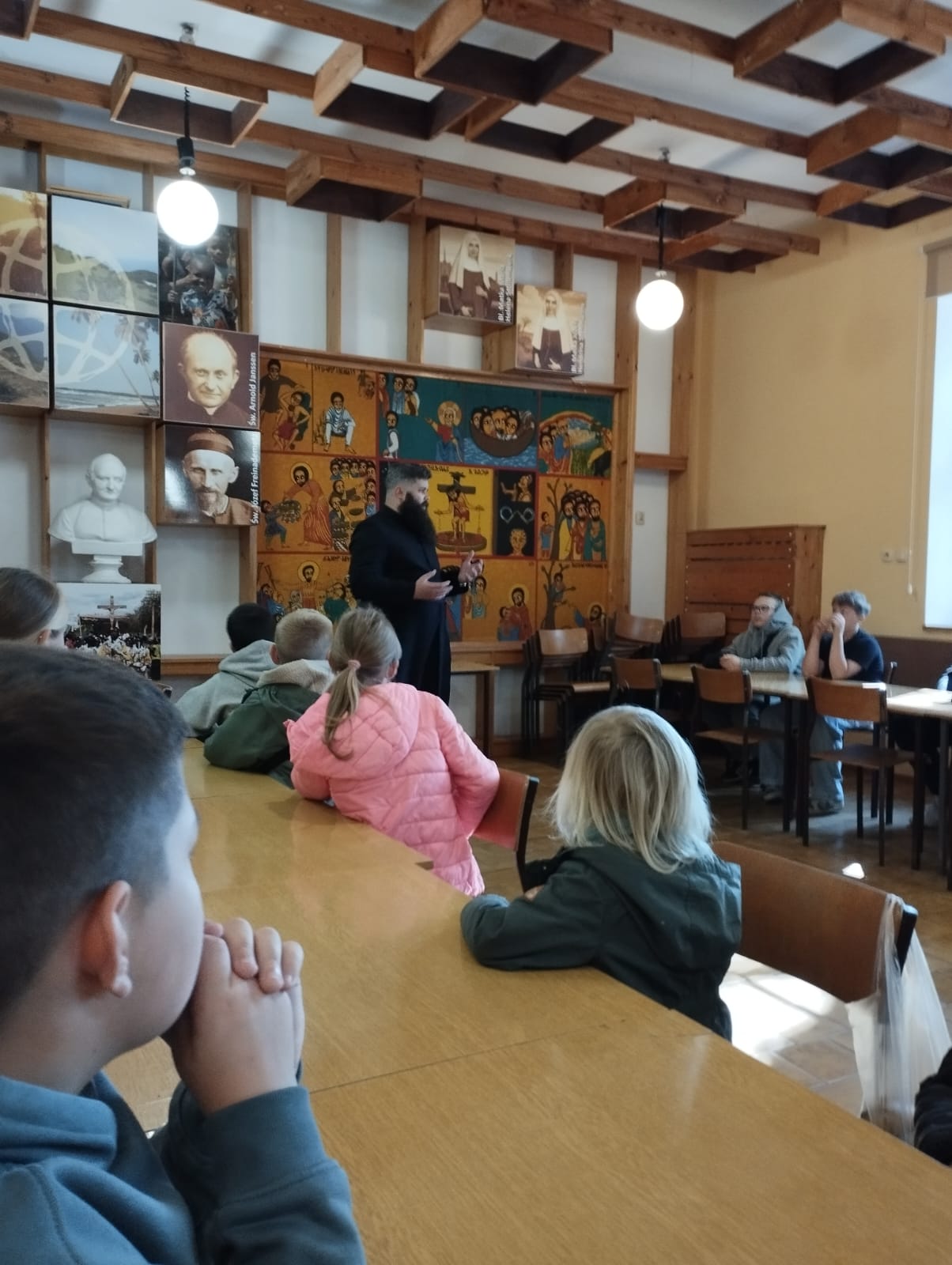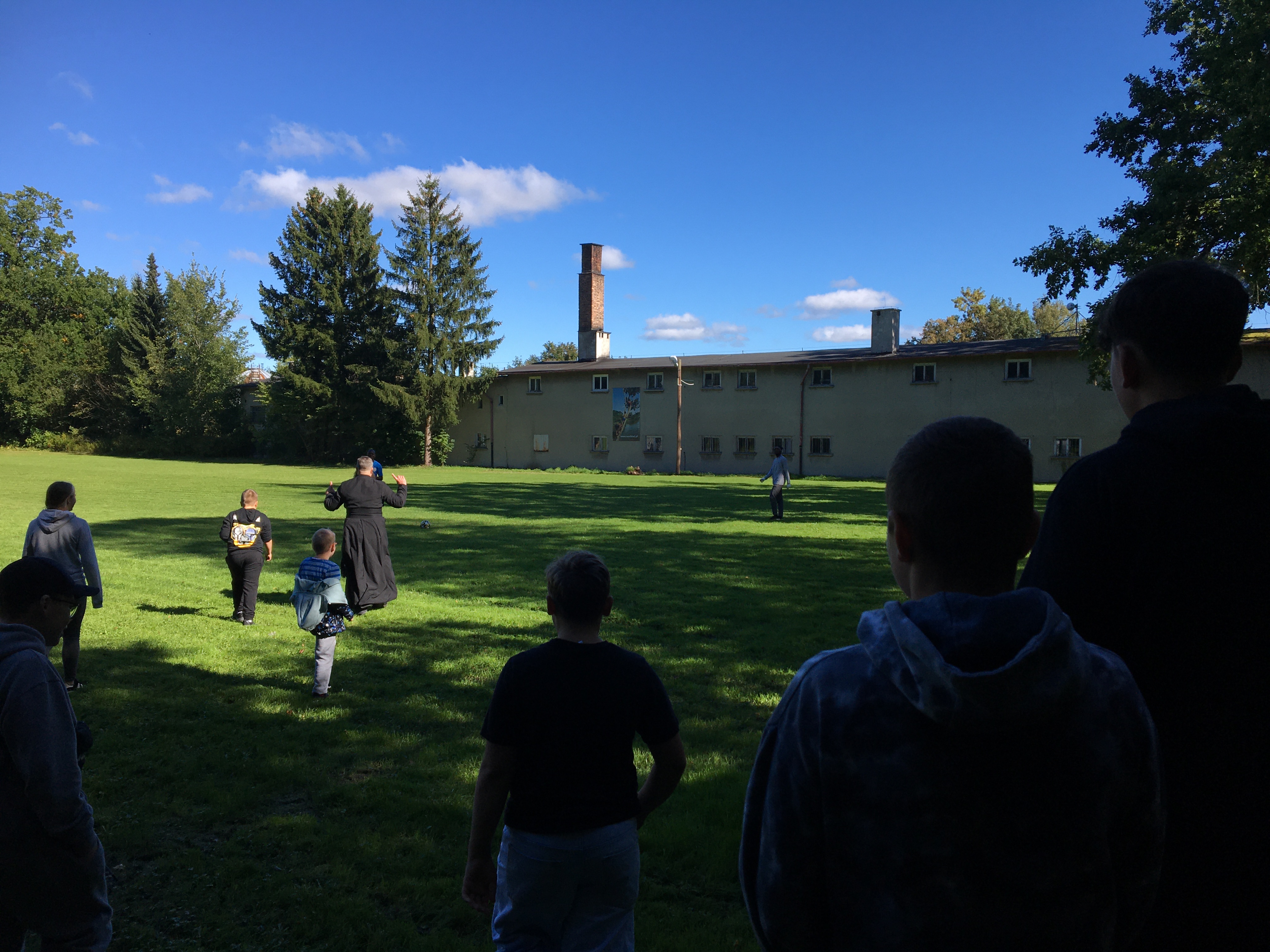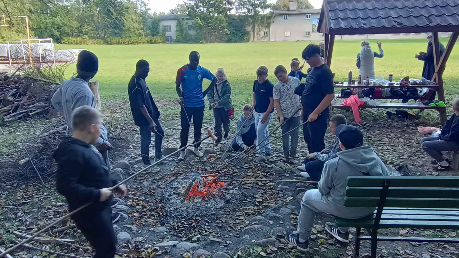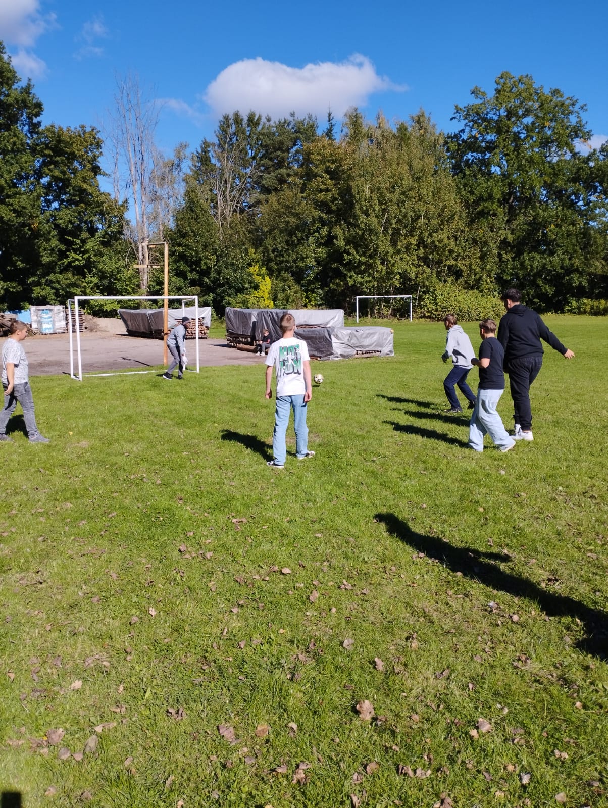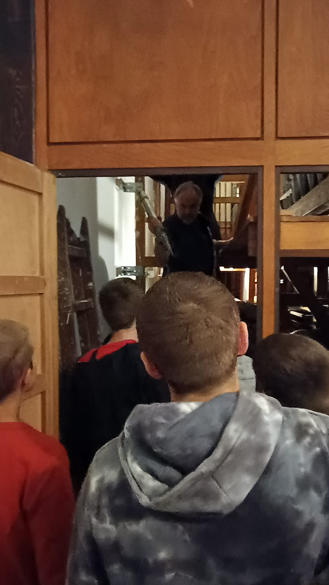 Do oddalonego o 46 kilometrów Pieniężna wyruszyliśmy w czwartkowy poranek. Celem zorganizowanej w ramach projektu Poznaj swoją małą Ojczyznę wycieczki było znajdujące się w siedzibie Misyjnego Seminarium Duchownego Księzy Werbistów Muzeum Misyjno - Etnograficzne. Założone w 1964 roku, poddane gruntownemu remontowi w latach 2018 -2025, Muzeum stanowi liczący 9000 eksponatów zbiór prezentujący dorobek kulturowy ludów wśród których pracowali i nadal pracują werbiści. Zamknięta w muzealnych gablotach feeria barw towarzyszyła nam podczas zwiedzania, a zaraz po niej przyszedł czas na zieleń seminaryjnego ogrodu, przez którą poprowadził nas kleryk Adam Ławniczak. Pamiętając powiedzenie o wszystkich drogach, które prowadzą do Rzymu, my doświadczyliśmy sytuacji, w której wszystkie drogi prowadzą zagorzałych miłośników piłki nożnej na boisko.Szczęśliwy traf oraz dobra energia towarzyszące nam tego dnia pozwoliły dołączyć do kleryków Jeana - Marie z Sudanu oraz jego dwóch kolegów z Togo i rozegrać mecz, który zakończył się arcysprawiedliwym wynikiem 3-3. Podczas meczu nie zabrakło serdecznych gestów, przybijania piątek i choć w użyciu były języki: francuski, angielski i polski, wyglądało na to, że wszyscy się rozumieją i pamiętają o przestrzeganiu zasad fair play. Język sportu jest językiem uniwersalnym.W tle płonęło ognisko, przypiekały się kiełbaski i toczyły rozmowy. Obrazu całości dopełniało słońce, które tego dnia przypomniało sobie i nam o złotej polskiej jesieni. Zaledwie sto metrów dalej, na oślej polance - w Królestwie Stefana i Tornada, życie toczyło się leniwie. Na krótką chwilę stało się ono i naszym udziałem. Werbistowskie osiołki jadły, szczerzyły zęby w beztroskim uśmiechu, a my patrzyliśmy, dotykaliśmy ich miękkiej sierści i ... również szczerzyliśmy zęby w beztroskim uśmiechu. Kolejne spotkanie całkowicie nas zaskoczyło. Zostaliśmy bowiem zaproszeni do wnętrza organów, a naszym mentorem stał się na ten czas ojciec Jan Glinka. Mogliśmy doświadczyć Jego pasji,zaangażowania i cierpliwości, a w przestrzeń popłynęły dźwięki wpisane w mapę pamięci i zapisane w sercu. Mnóstwo dobrej energii! Pragniemy serdecznie podziękować wszystkim naszym pieniężnieńskim przewodnikom: Pani Beacie za wędrówkę muzealnymi ścieżkami, ojcu Janowi za chęć podzielenia się z nami pięknem swojego świata, klerykowi Adamowi za ciekawą opowieść o pracy misyjnej w Afryce, młodzieńczy spontan i opiekę nad nami. Mamy nadzieję na kolejne dobre spotkania! Otrzymaliśmy od Was niezwykły dar - mnóstwo dobrej energii!