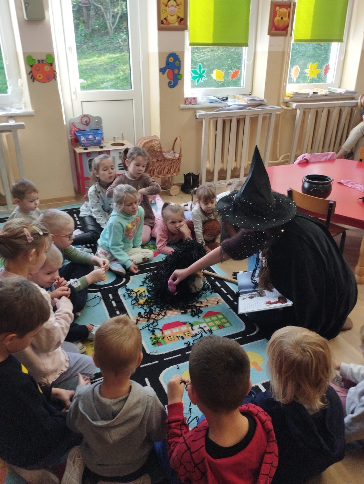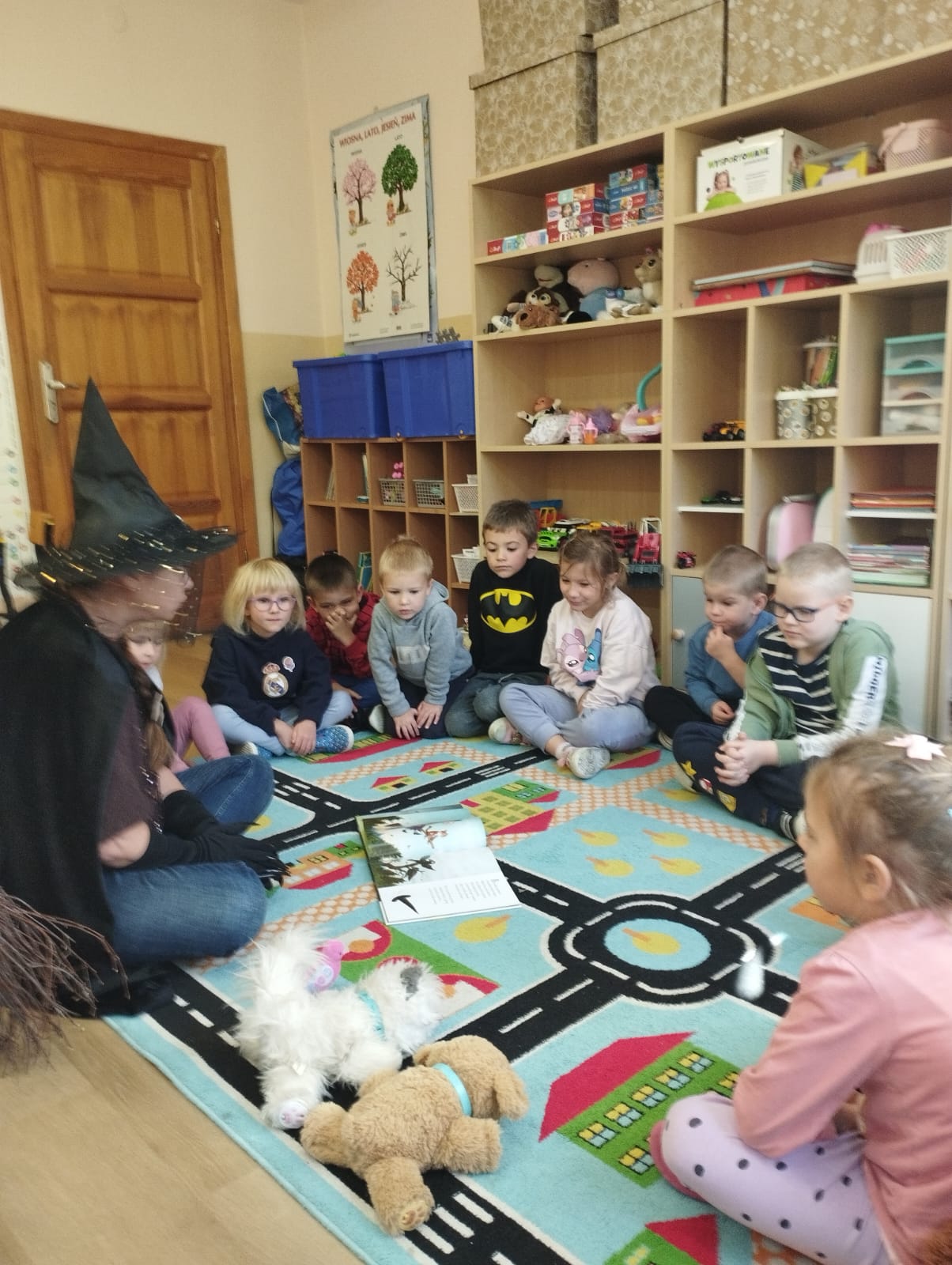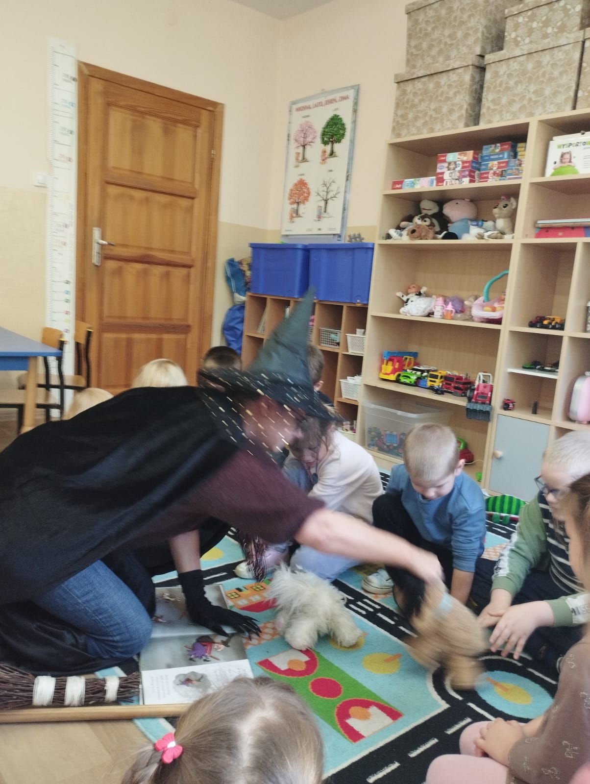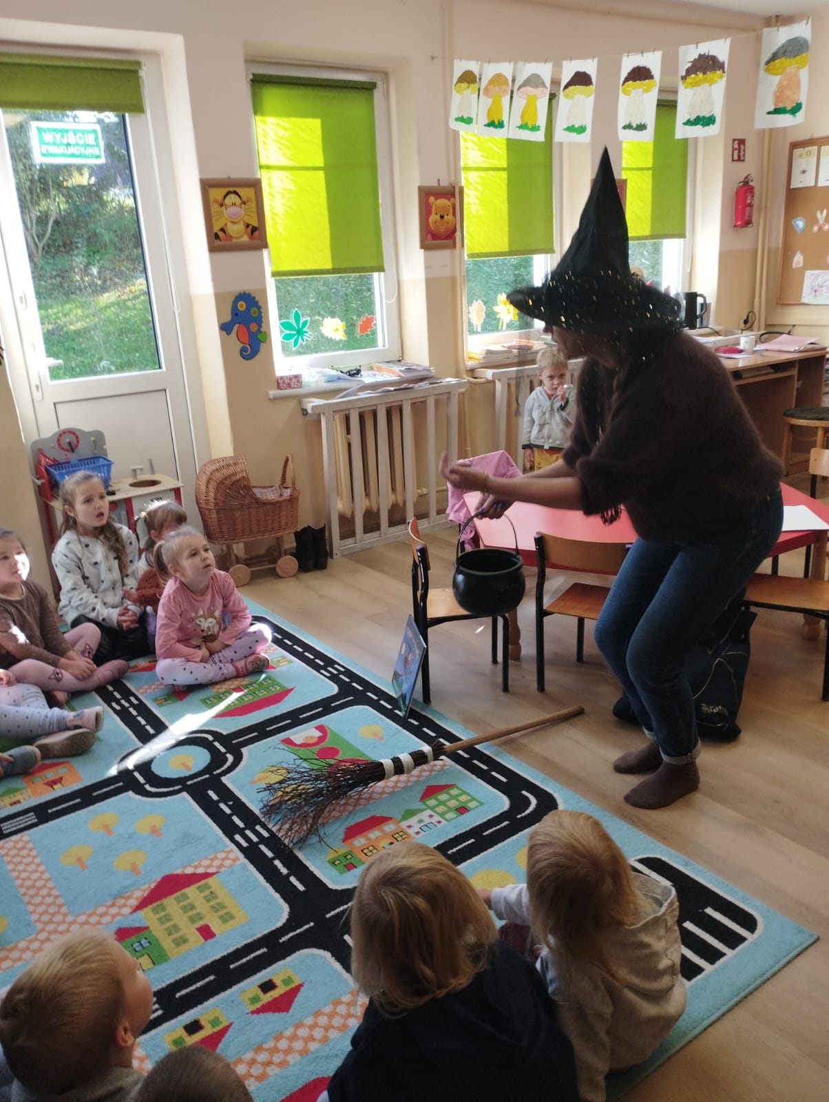 Dobra czarownica ze swym wiernym kotem przyjęła na swą miotłę psa, ptaszka i żabę ...  i całą grupę naszych przedszkolaków. Wszyscy usadowili się wygodnie i wyruszyli w pełną przygód podróż. Czary mary. Z wysoka oglądali świat. Góry, rzeki, jeziora, bagniska... Lasy, zwierzęta, smoki, smoczyska... W kociołku Baby bulgotało, syczało, skwierczało. Czary mary. Wszystko było w tym dniu możliwe. Nawet to niemożliwe. Doświadczyliśmy przyjaźni, która niczym drzewo stała się domem dla wszystkich ptaków. Czary mary.