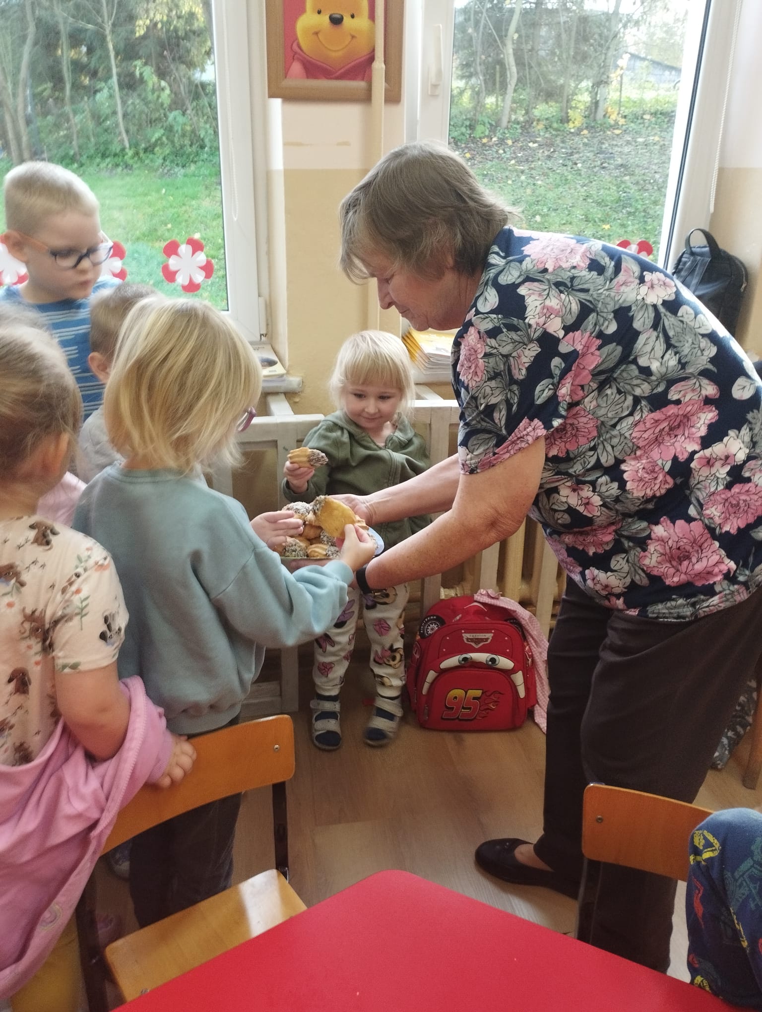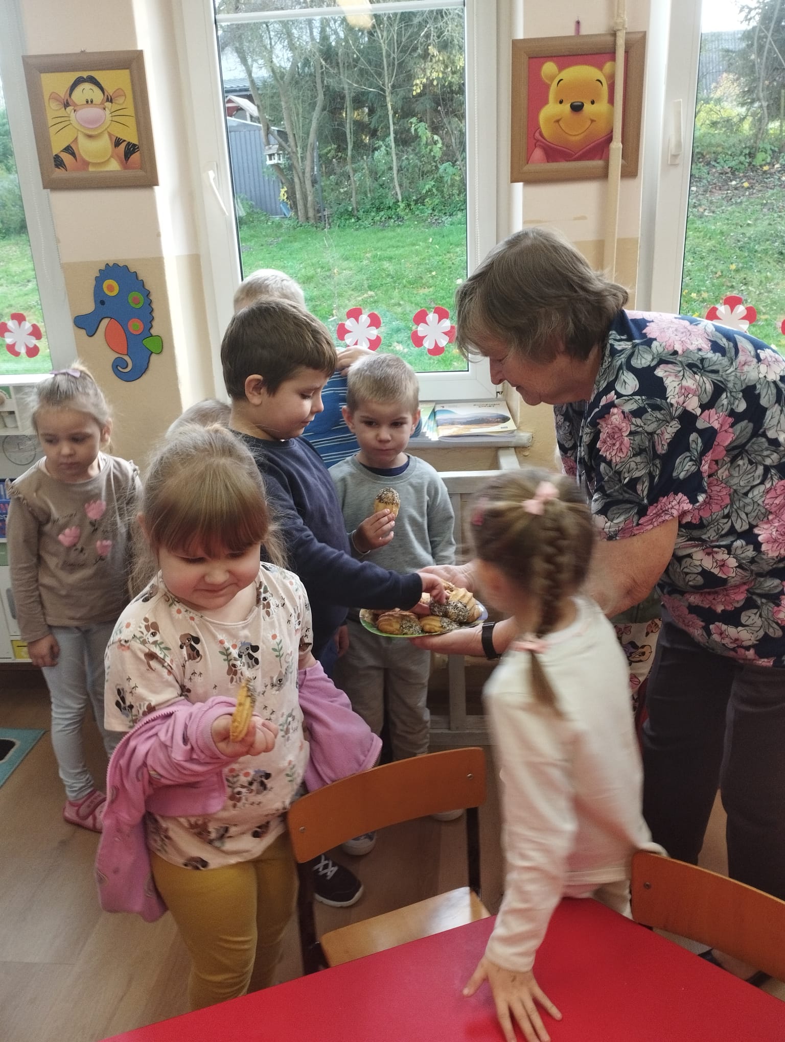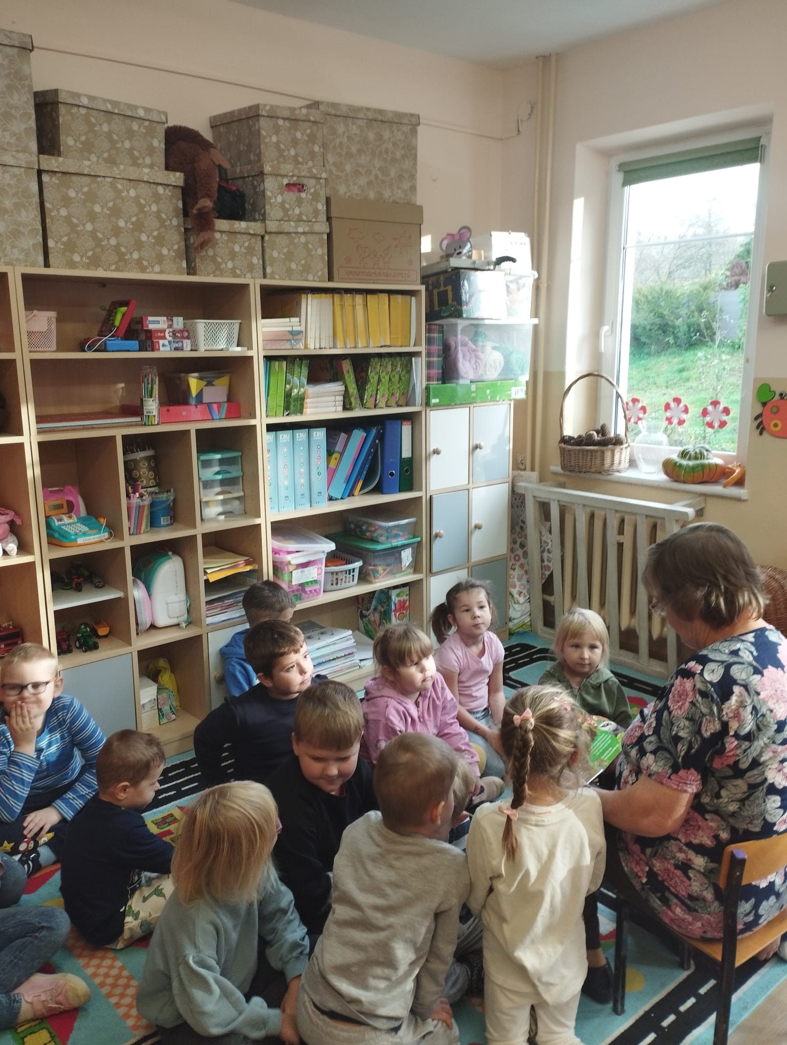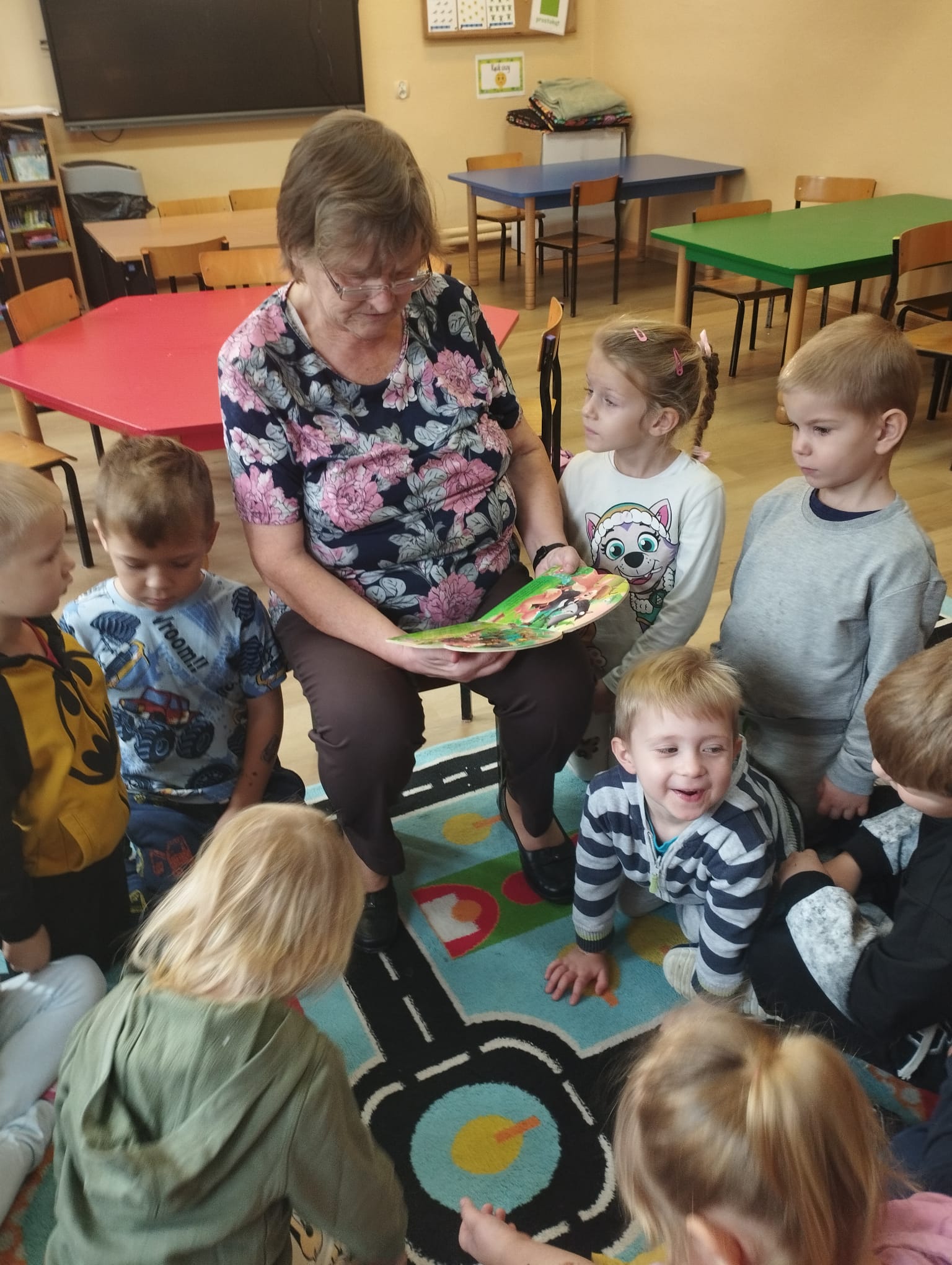 Prowadzona przez nas od kilku lat Akcja czytelnicza „Rodzice czytają dzieciom" zyskała wczoraj nowe oblicze. Oddział przedszkolny odwiedziła wspaniała kobieta z ciepłym uśmiechem i wielką pogodą ducha - Pani Danuta Michałowska - Babcia Tymona i Stefana. Lekturą tego wyjątkowego dnia stała się książeczka pt. „Mądra sowa" autorstwa Urszuli Kozłowskiej. Całości dopełniły ... ciasteczka przyniesione  naszym przedszkolakom przez naszego Gościa. Powszechne powiedzenie mówi, że Babcie i Dziadkowie są od rozpieszczania. Prawda!
