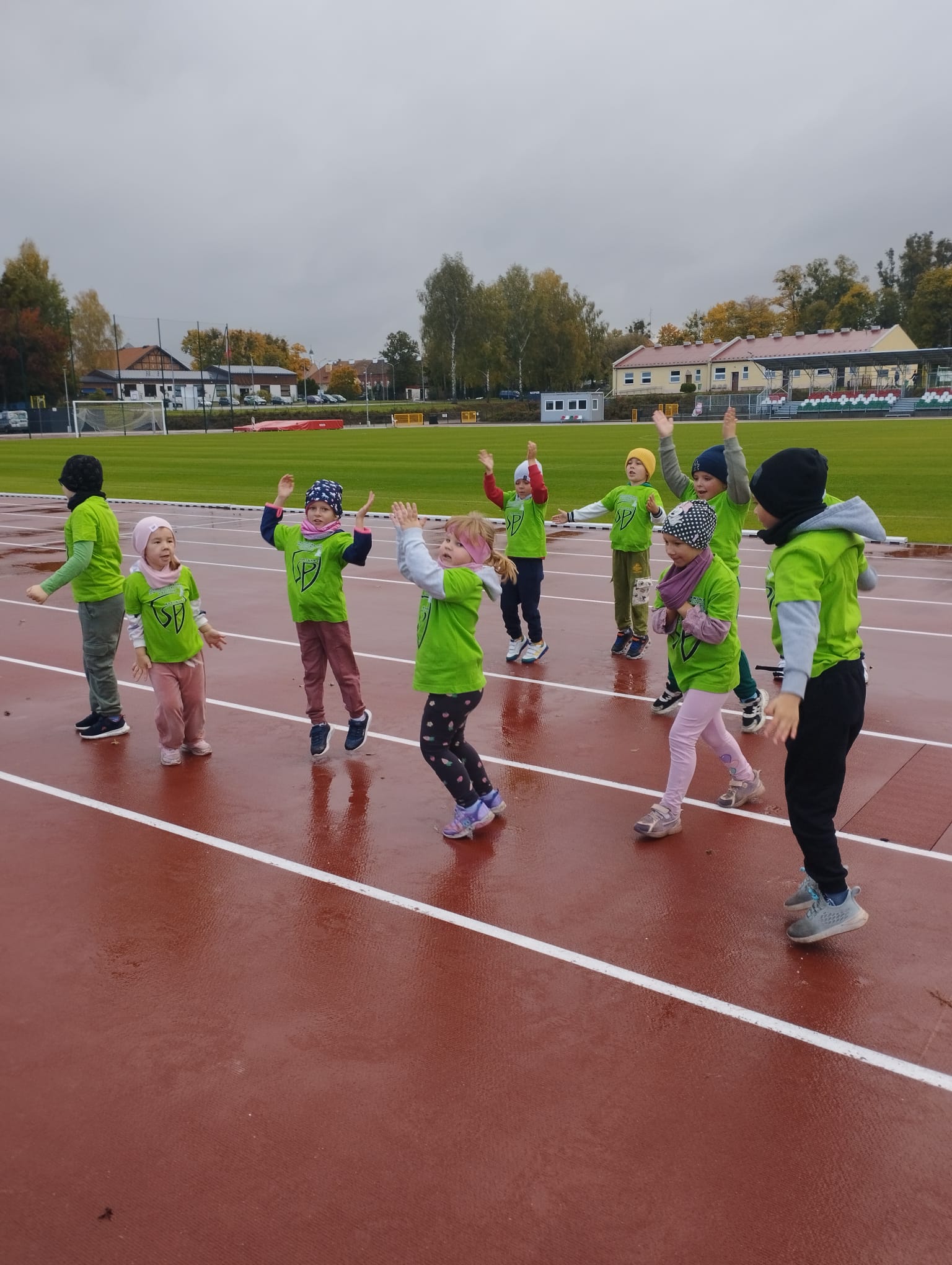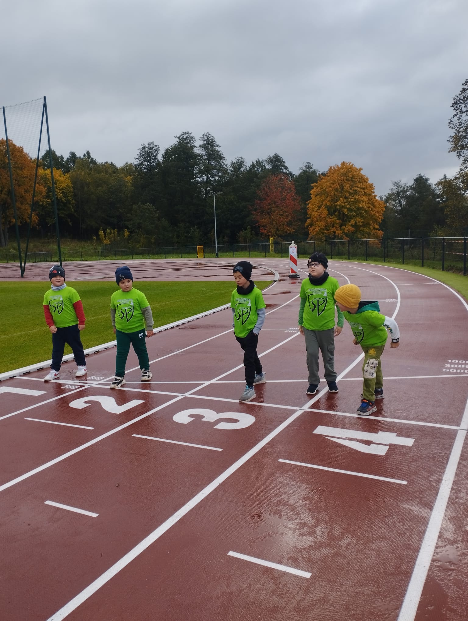 W ubiegły piątek nasi najmłodsi uczniowie wyruszyli na dobromiejski stadion, by udowodnić, że po pierwsze, w zdrowym ciele zdrowy duch, a po drugie, rok sportowy trwa przez cały rok kalendarzowy, a nieco gorsze warunki pogodowe prawdziwym sportowcom niestraszne. Dobry duch stadionu sprawił, iż biegaliśmy jak uskrzydleni.Było to również zasługą naszej niespożytej energii jak i zielonych koszulek z logo naszej szkoły. Mamy nadzieję, iż ponownie dodadzą nam one skrzydeł podczas najbliższych zawodów sportowych.