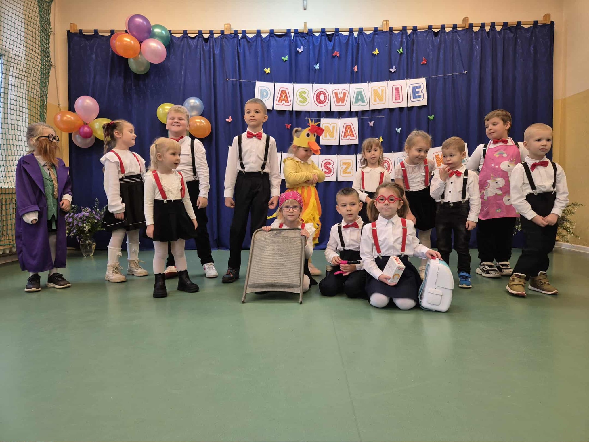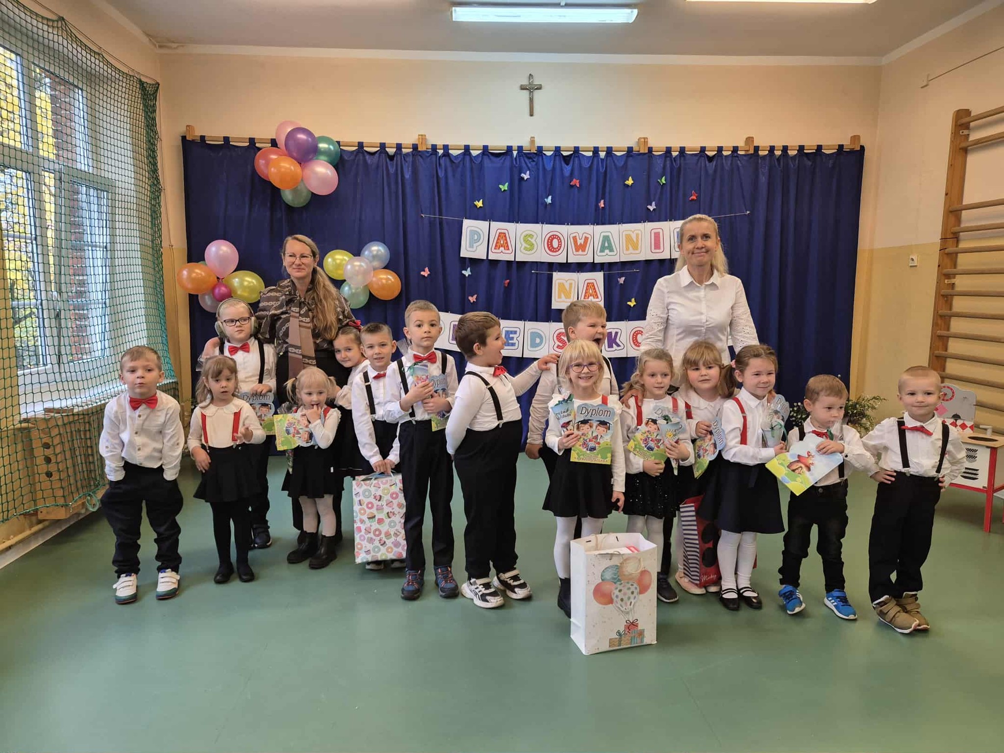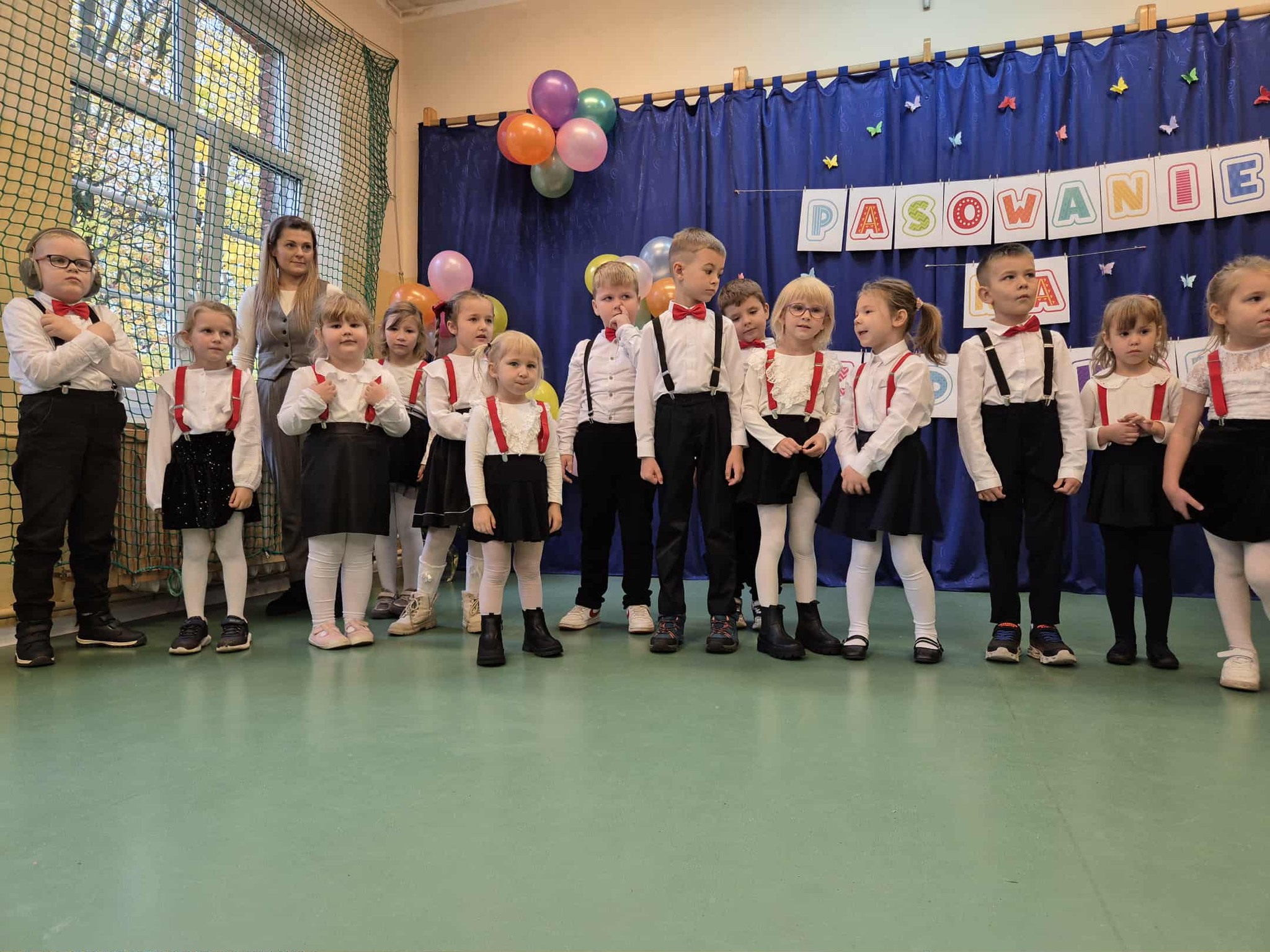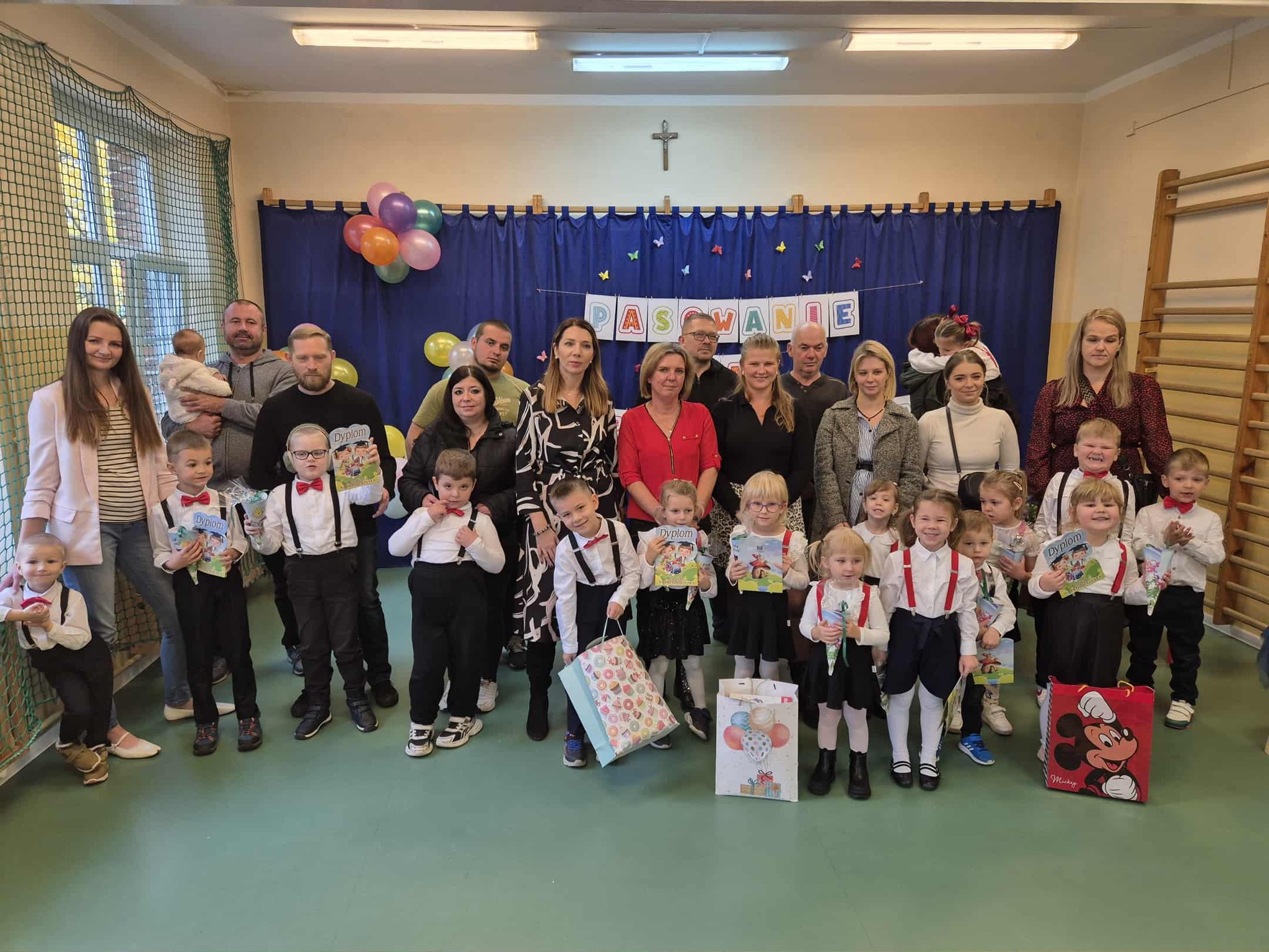 29 października w naszym oddziale przedszkolnym odbyła się uroczystość pasowania na przedszkolaka. Nasi mali artyści zaprezentowali przygotowane z ogromną starannością wiersze oraz piosenki. Po części artystycznej Pani Dyrektor dużym, drewnianym ołówkiem dokonała pasowania każdego przedszkolaka. Na pamiątkę tego ważnego wydarzenia wszystkie maluchy otrzymały dyplomy oraz prezenty. Na zakończenie uroczystości przedszkolaki udały się na poczęstunek, gdzie czekał na nie pyszny tort.