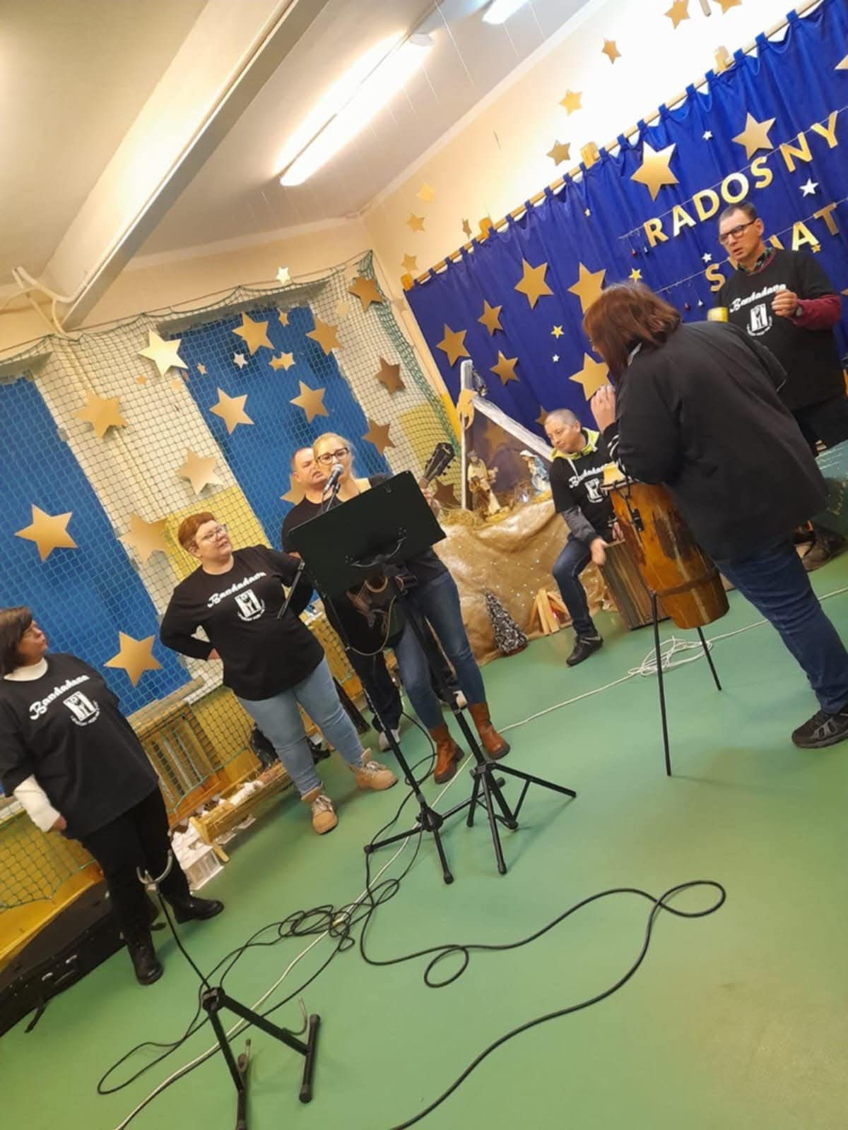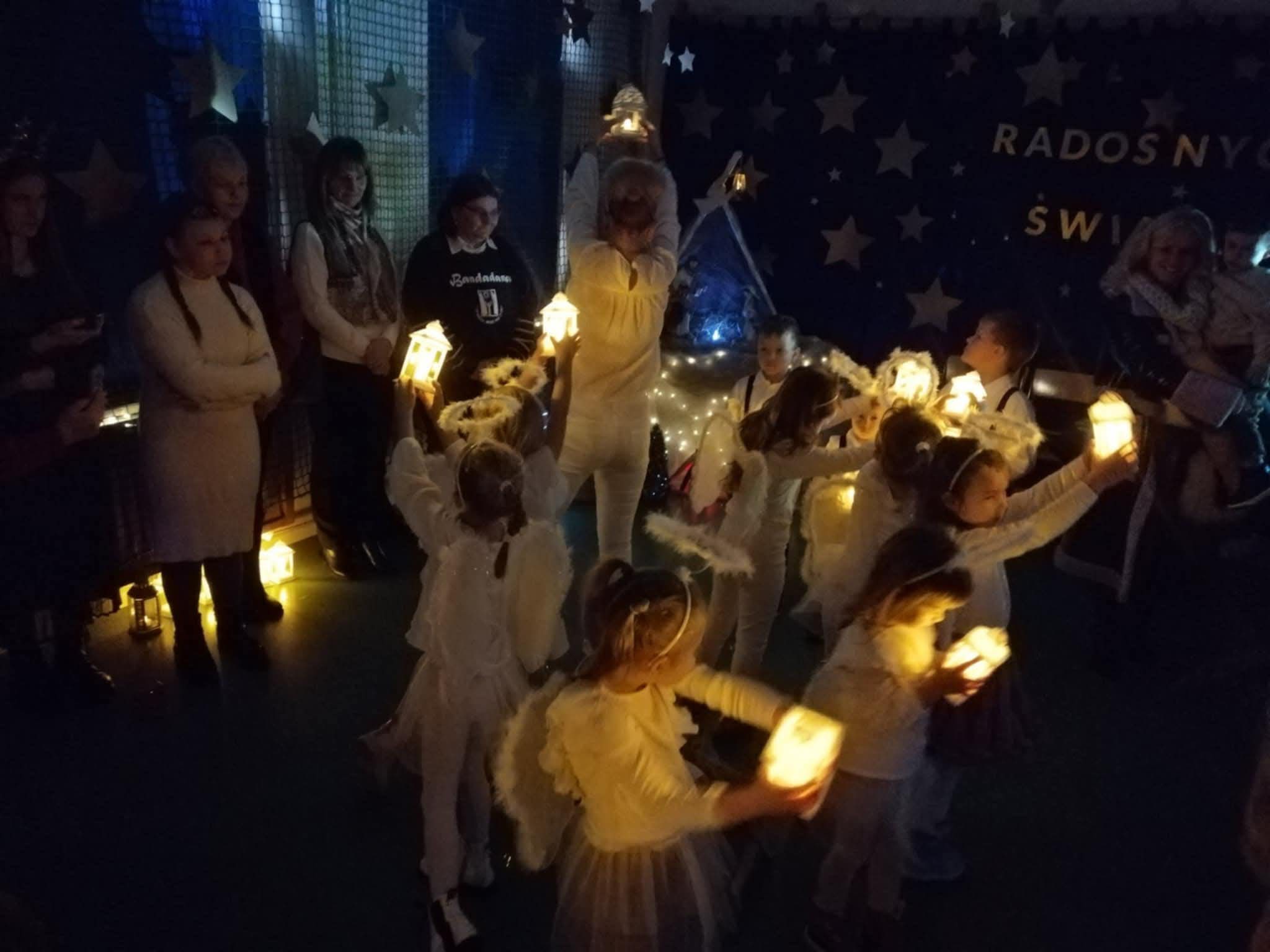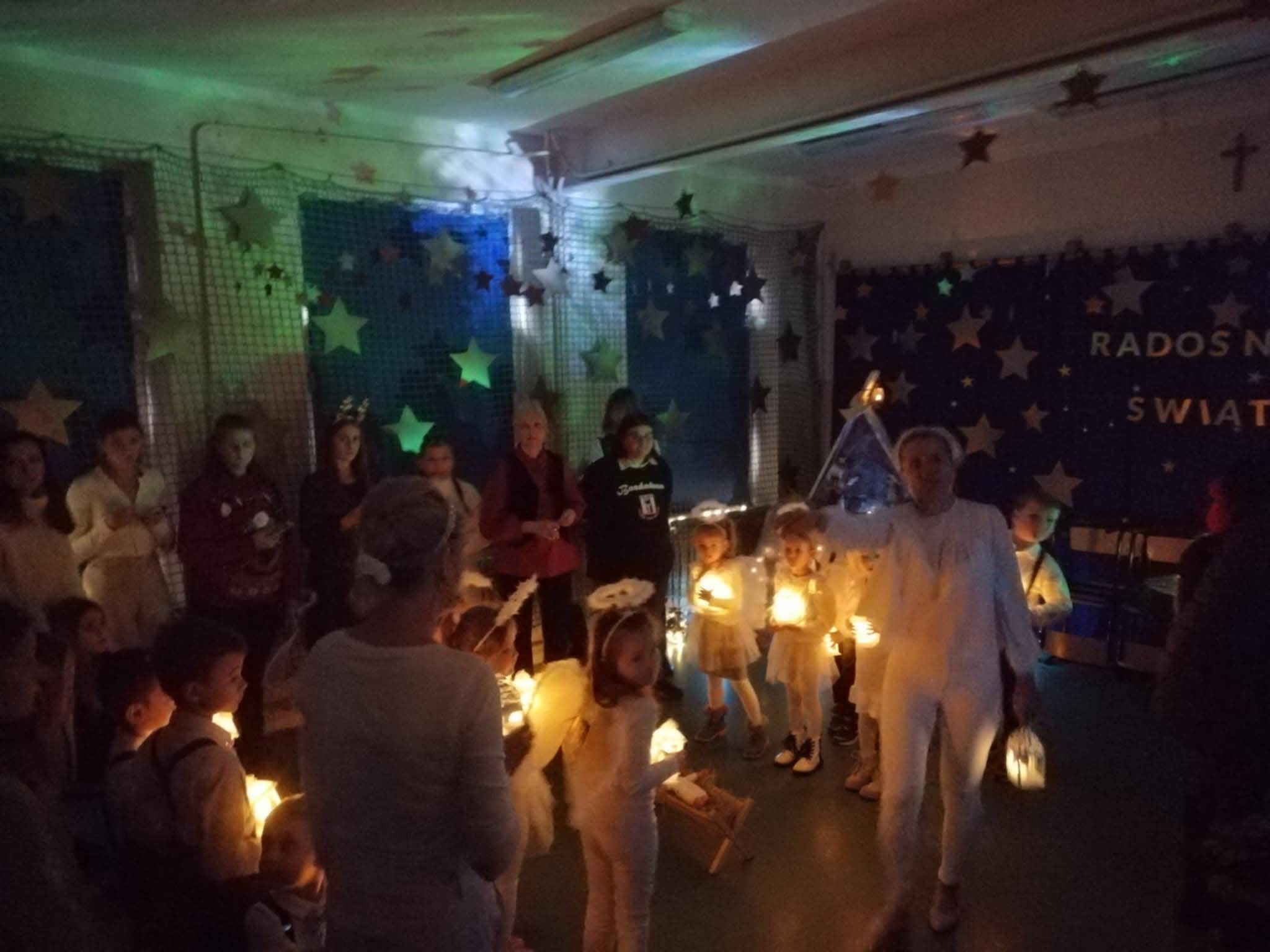 Mogliśmy podziwiać zjawiskowy taniec z latarenkami naszych najmłodszych uczniów z oddziału przedszkolnego, wysłuchać utworów świątecznych zaprezentowanych przez zespół muzyczny dobromiejskiego PSONI - Bandadana, przy udziale Karoliny - zdolnej skrzypaczki, a także obejrzeć jasełka w wykonaniu starszych uczniów. Było również coś dla ciała - czyli kawiarenka Zientarówki z aromatyczną herbatką i słodkimi wypiekami, oraz coś dla ducha i oka - nasz coroczny kiermasz ozdób świątecznych.