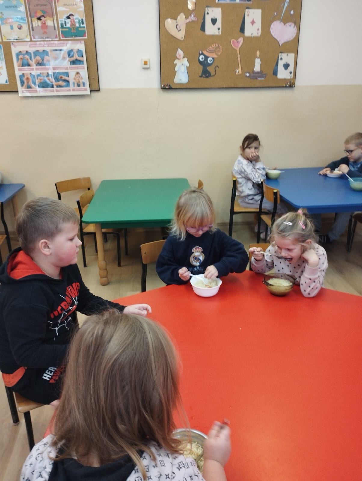 Listopad upływa w oddziale przedszkolnym pod znakiem kulinariów. To, co misie lubią najbardziej, to miód, zwłaszcza miód z dodatkiem śmietanki. To, co my lubimy najbardziej, to rosół z makaronem i naleśniki z owocami A gdy można je zjeść w towarzystwie pluszowego misia, to już nic innego do szczęścia nie potrzeba. No może oprócz śniegu!